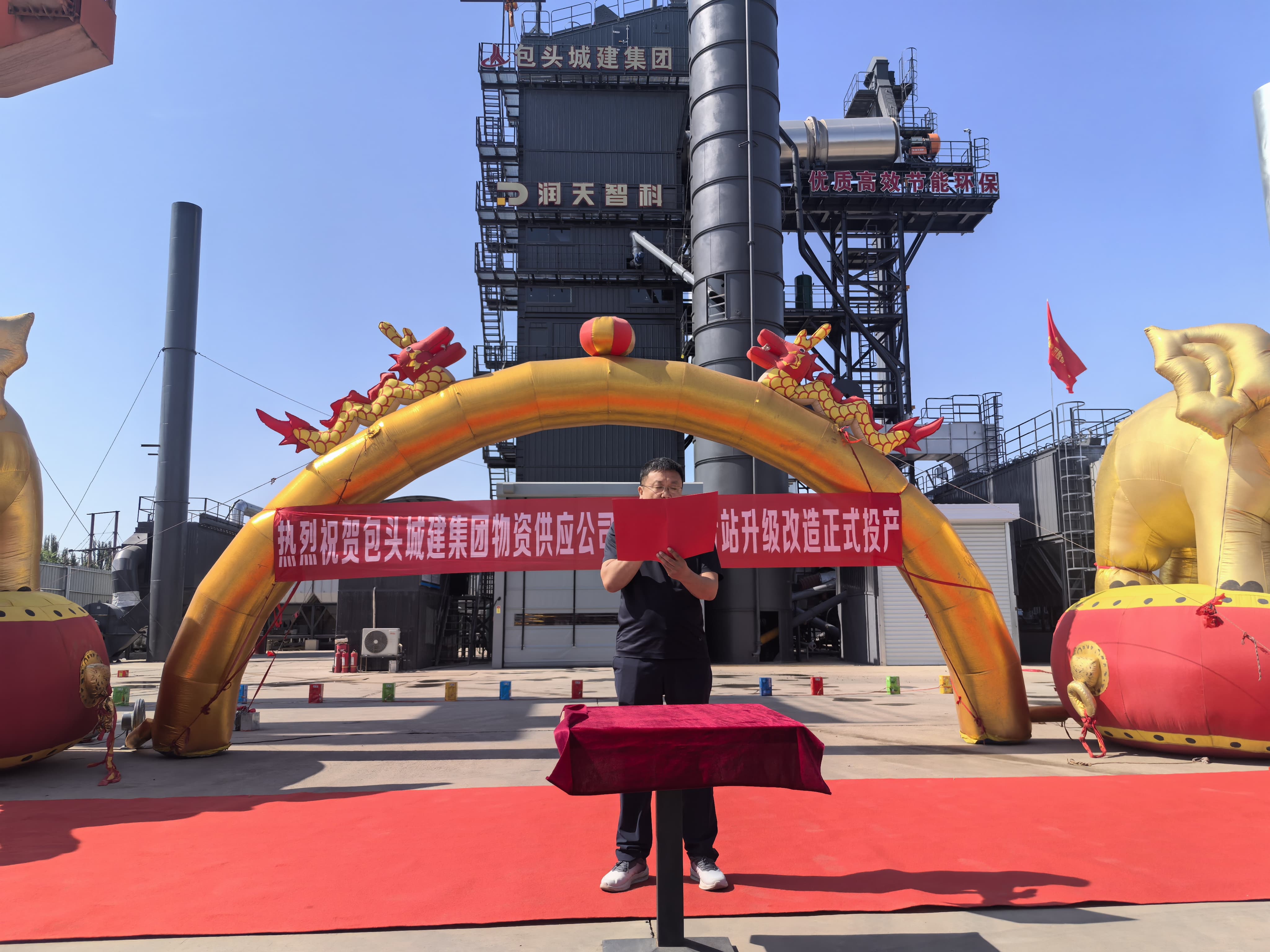 盛夏的包頭,彩旗招展。在包頭城建集團瀝青站項目盛大開業(yè)慶典現(xiàn)場,潤天智科董事長張裕先生親自率領核心團隊,與各界嘉賓共同見證了這一重要時刻,并參與了剪彩儀式。這不僅標志著潤天智科LBR系列一體式瀝青混合料攪拌設備在內蒙古******項目的成功投運,更揭開了雙方深度合作、共拓市場的嶄新序幕!